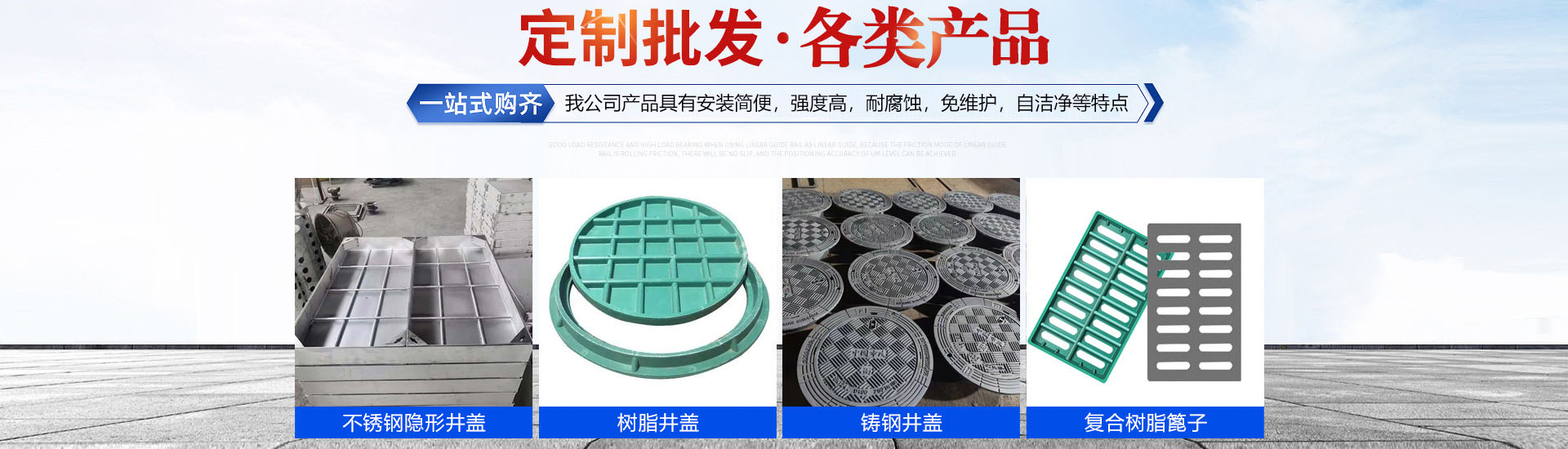 我公司是以经营市政道路设施、销售为一体的现代化企业,主要产品有球墨铸铁雨水篦子、球墨铸铁井盖、不锈钢篦子、不锈钢隐形井盖、树脂井盖、树脂篦子、铸钢井盖等产品的企业。公司坐落于中国铸造之乡河北沧州。